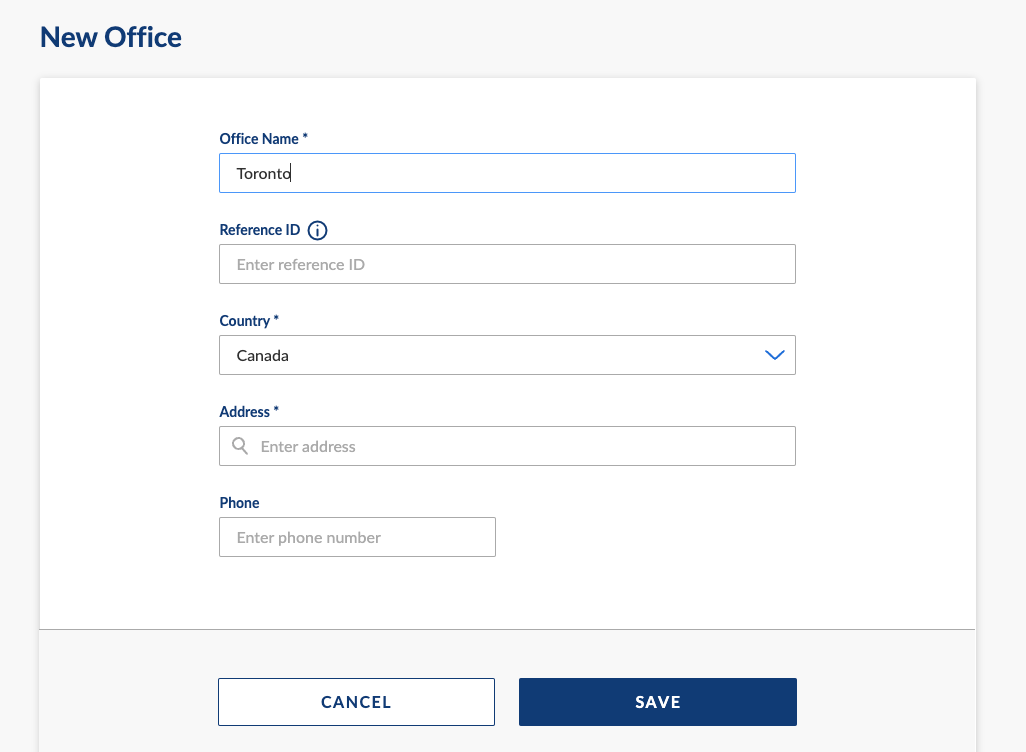 Step 2: Go to the OFFICES tab, then click ADD NEW OFFICE.